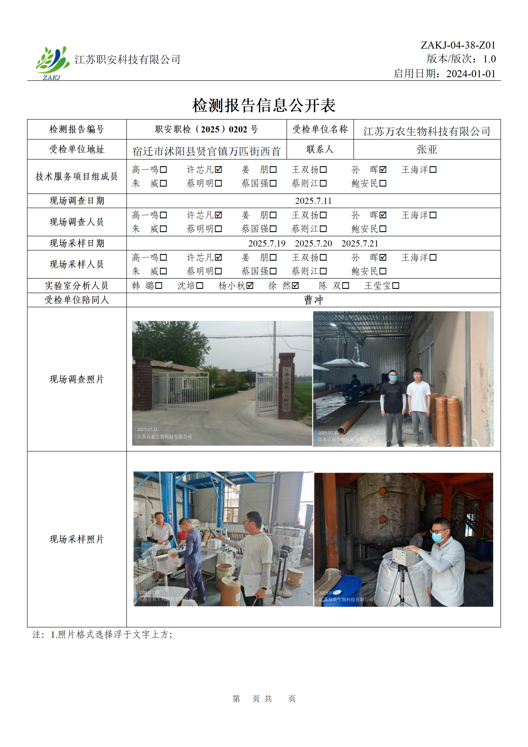 檢測報告公示