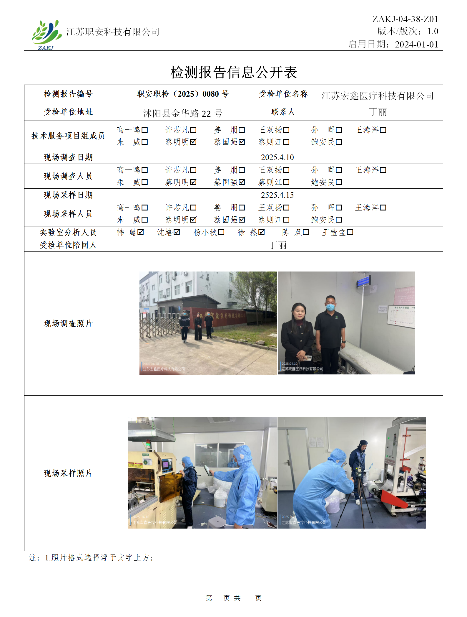 檢測報告公示